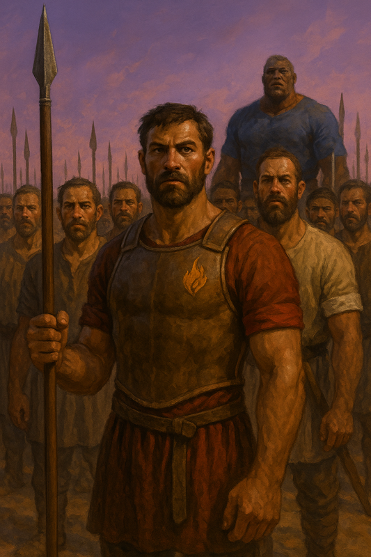 And then he appeared. Ashurak, the Lion-Blood. Kadon knew the face before the man spoke—every soldier did. He was a story walking in flesh, a half-blood whose name had filled campfires and marketplaces since Kadon was a boy. To see him here, standing among them, was enough to make some men straighten and others falter. He strode to the front, his size alone parting the crowd.