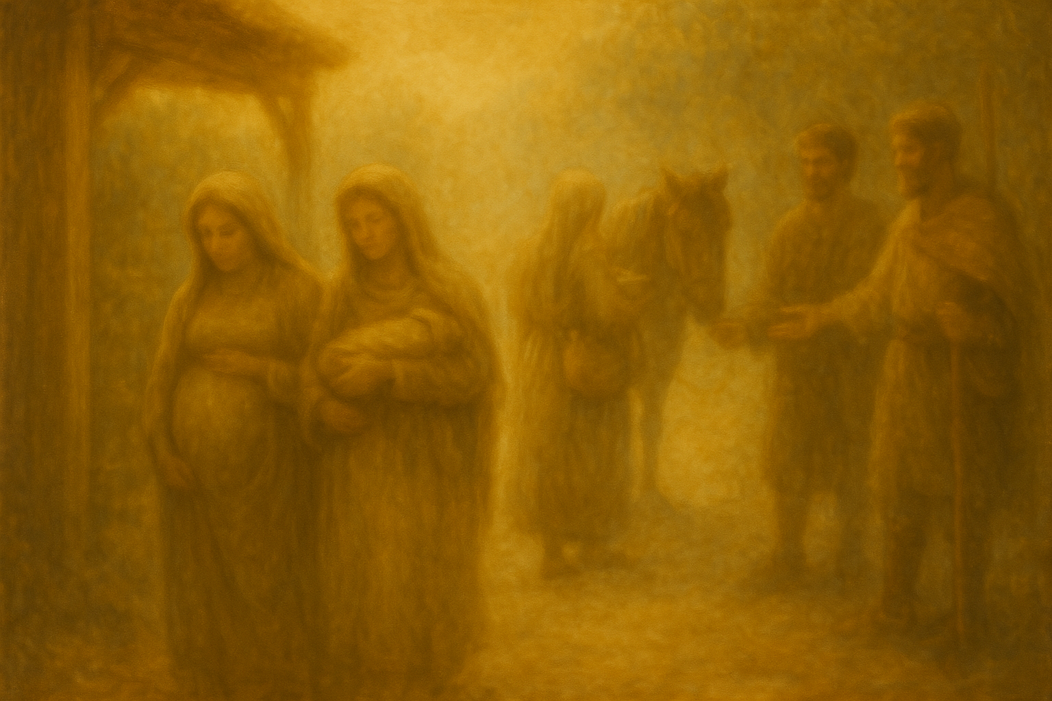 彼らの足元で傾斜路が静かに軋み、馬が中へと導かれ、冷たい空気に吐息が曇っていた。ロシムは熱心にランプをいくつか灯した。壁に光が輝き――金色に輝く光が、磨き上げられた梁とそれを囲むピッチの継ぎ目に映っていた。空気は杉と埃の匂い、そして何かさらに古く、見分けがつかない匂いがした。